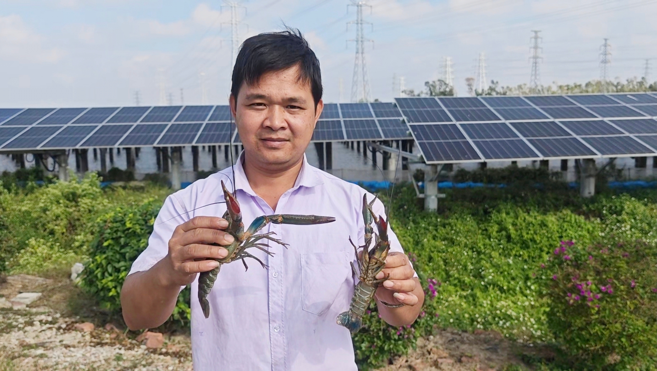 “幻彩蓝甲”出击!虾界“阿凡达”淡水澳龙喜获丰收——湛江坡头光伏电站“渔光互补”模式突显成效
